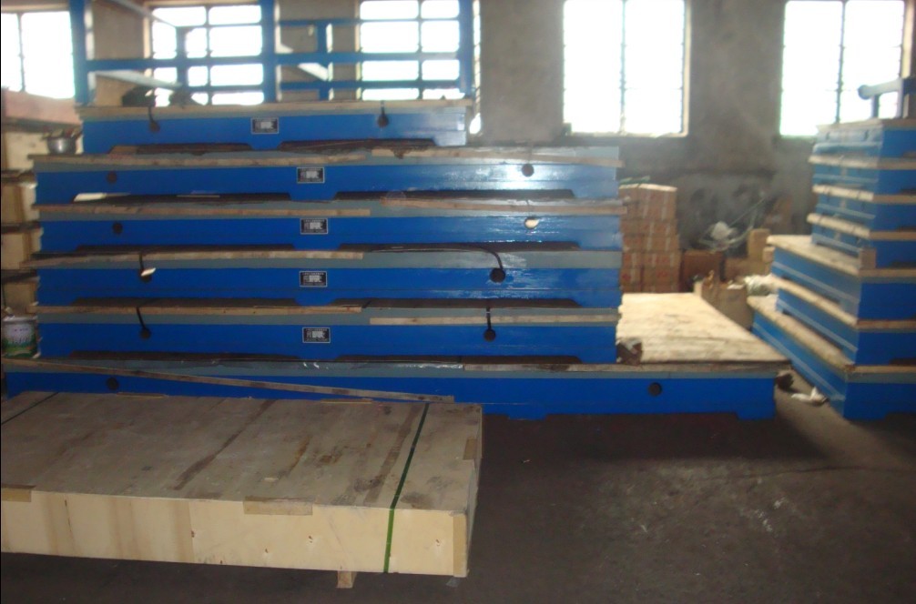 鑄鐵平臺產(chǎn)品別名: 鑄鐵平板鑄鐵平臺 劃線平板 檢驗(yàn)平板 測量平板 刮研平板 裝配平板 鑄鐵平臺按GB/4986-85的標(biāo)準(zhǔn)制造,產(chǎn)品制成筋板式和箱體式,工作有長方形,材料HT200,工作面采用刮研工藝,工作面上可加V型、T型、U型槽和圓孔、長孔等。平板是用于工件檢測或劃線的平面基準(zhǔn)器具。平板安裝應(yīng)調(diào)至水平、負(fù)荷均分布于各支點(diǎn)上,環(huán)境溫度(20±5℃)使用時(shí)應(yīng)避免振動(dòng)。 鑄鐵平臺用途:用于機(jī)械、發(fā)動(dòng)機(jī)的動(dòng)力實(shí)驗(yàn),設(shè)備調(diào)試,具有較好的平面穩(wěn)定性和韌性,表面帶有T型槽,可以用來固定實(shí)驗(yàn)設(shè)備。 鑄鐵平臺材質(zhì):高強(qiáng)度鑄鐵HT200-300工作面硬度為HB170-240,經(jīng)過兩次人工處理(人工退火600度-700度和自然時(shí)效2-3年)使用該產(chǎn)品的精度穩(wěn)定,耐磨性能好。 鑄鐵平臺規(guī)格:100×100—3000×8000,(大于此規(guī)格的鑄鐵平臺可以拼裝使用或按圖紙訂做。) 鑄鐵平臺精度:按國家標(biāo)準(zhǔn)計(jì)量檢定規(guī)程執(zhí)行,分別為0、1、2、3四個(gè)等級。 規(guī)格 | 精度等級 | 規(guī)格 | 精度等級 | 0級 | 1級 | 2級 | 3級 | 精刨 | 0級 | 1級 | 2級 | 3級 | 精刨 | 100×100 | 4 | 8 | 26 | | | 2500×2500 | | | 72 | 180 | 270 | 200×100 | 5 | 10 | 20 | | | 3000×1000 | | | | 168 | 248 | 200×200 | 5 | 10 | 20 | | | 3000×1500 | | | | 174 | 154 | 300×200 | 6 | 12 | 24 | | | 3000×2000 | | | | 184 | 275 | 300×300 | 6 | 12 | 24 | | | 3000×2500 | | | | 186 | 276 | 400×300 | 6 | 12 | 24 | | | 3000×3000 | | | | 210 | 300 | 400×400 | 6 | 12 | 24 | | | 4000×1000 | | | | 210 | 300 | 500×300 | 6 | 12 | 24 | | | 4000×1500 | | | | 210 | 300 | 500×500 | 7 | 14 | 28 | | | 4000×2000 | | | | 219 | 310 | 600×400 | 7 | 14 | 28 | | | 4000×2500 | | | | 228 | 340 | 600×500 | 7 | 14 | 28 | | | 4000×3000 | | | | 240 | 360 | 800×500 | 8 | 16 | 32 | 80 | | 5000×1500 | | | | 249 | 370 | 800×600 | 8 | 16 | 32 | 80 | | 5000×2000 | | | | 255 | 375 | 900×600 | 8 | 16 | 32 | 80 | | 5000×2500 | | | | 264 | 390 | 1000×750 | 9 | 18 | 36 | 90 | | 5000×3000 | | | | 287 | 420 | 1000×1000 | 10 | 20 | 39 | 96 | | 6000×1500 | | | | 287 | 420 | 1200×1000 | | 20 | 39 | 96 | | 6000×2000 | | | | 293 | 430 | 1500×1000 | | 24 | 48 | 120 | | 6000×2500 | | | | 300 | 450 | 1500×1500 | | 25 | 50 | 125 | | 6000×3000 | | | | 308 | 460 | 2000×1000 | | 26 | 52 | 129 | | 8000×1500 | | | | 366 | 500 | 2000×1500 | | | 56 | 140 | | 8000×2000 | | | | 370 | 520 | 2000×2000 | | | 60 | 152 | 230 | 8000×2500 | | | | 375 | 530 | 2500×1500 | | | 64 | 152 | 230 | 8000×3000 | | | | 382 | 570 | 2500×2000 | | | 68 | 168 | 248 | | |